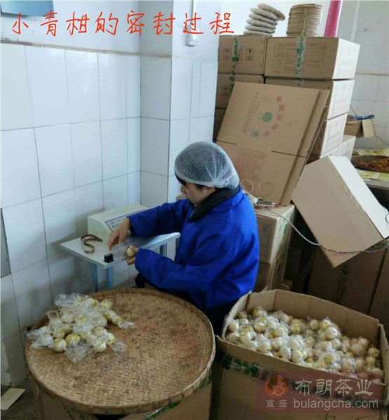 圖一是工人對剛剛做出來的小青柑進(jìn)行密封保存為成品,目的是為了讓消費(fèi)者品飲的時候還完全的保留著其香氣與口感。圖二是已經(jīng)包裝好的成品小青柑。