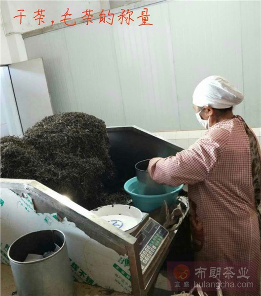 圖一是將曬青毛茶進(jìn)行稱量,這一過程要求工人在稱量散茶的同時將毛茶裝入布袋中。